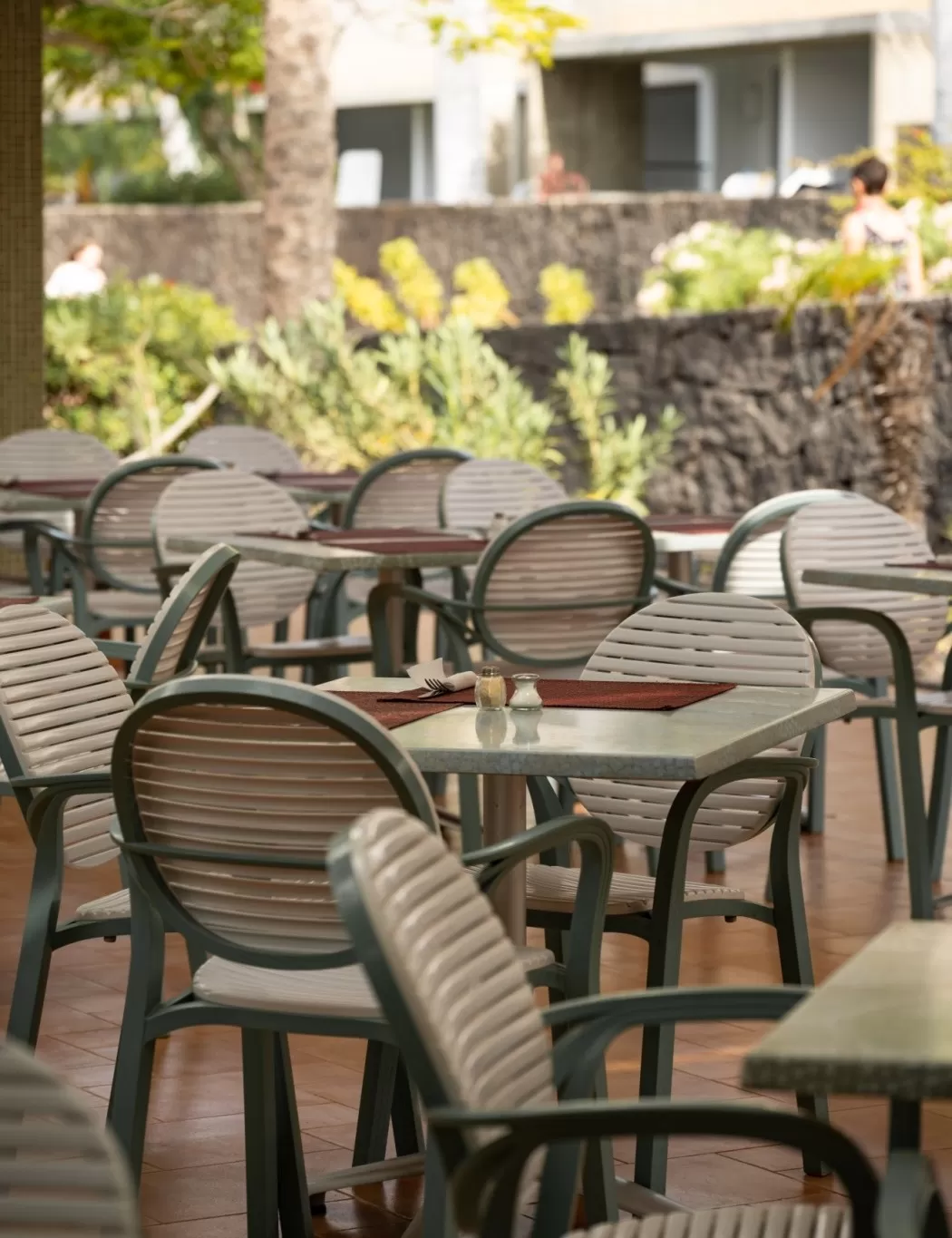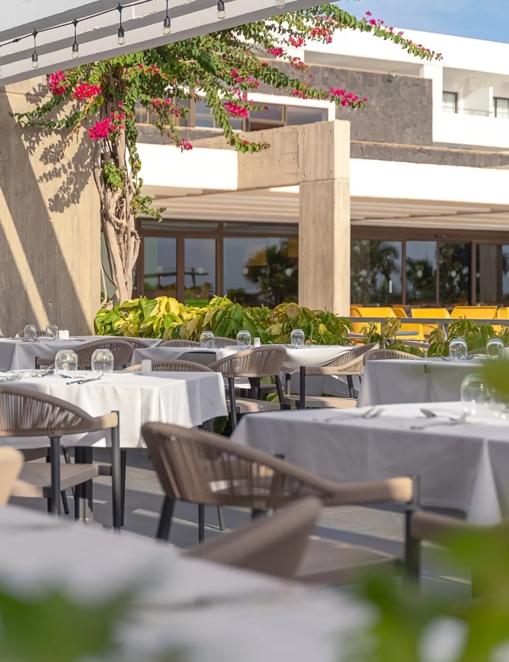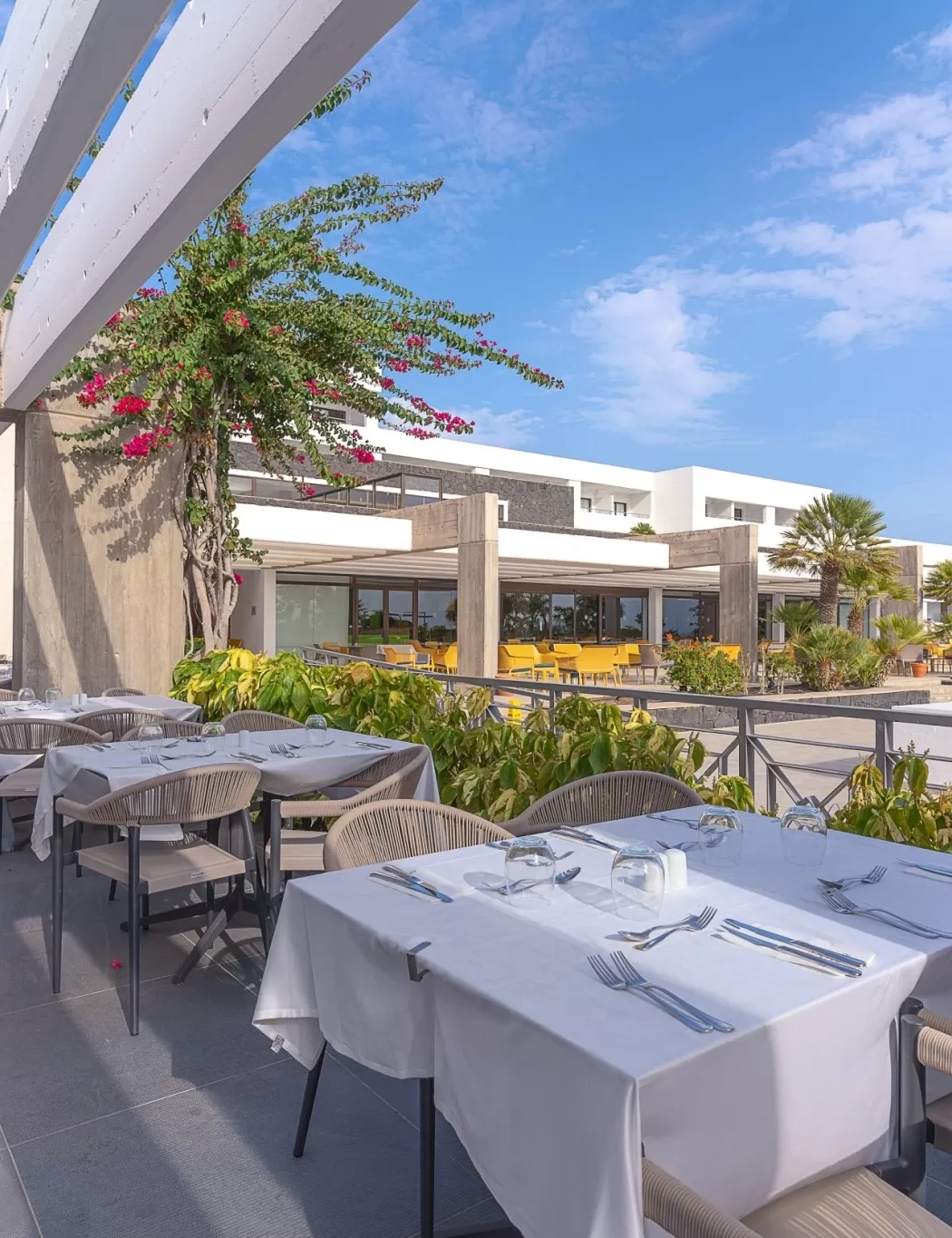 Manger en plein air, entouré de jardins luxuriants, est toujours un plaisir à l’hôtel Costa Calero Thalasso & Spa.